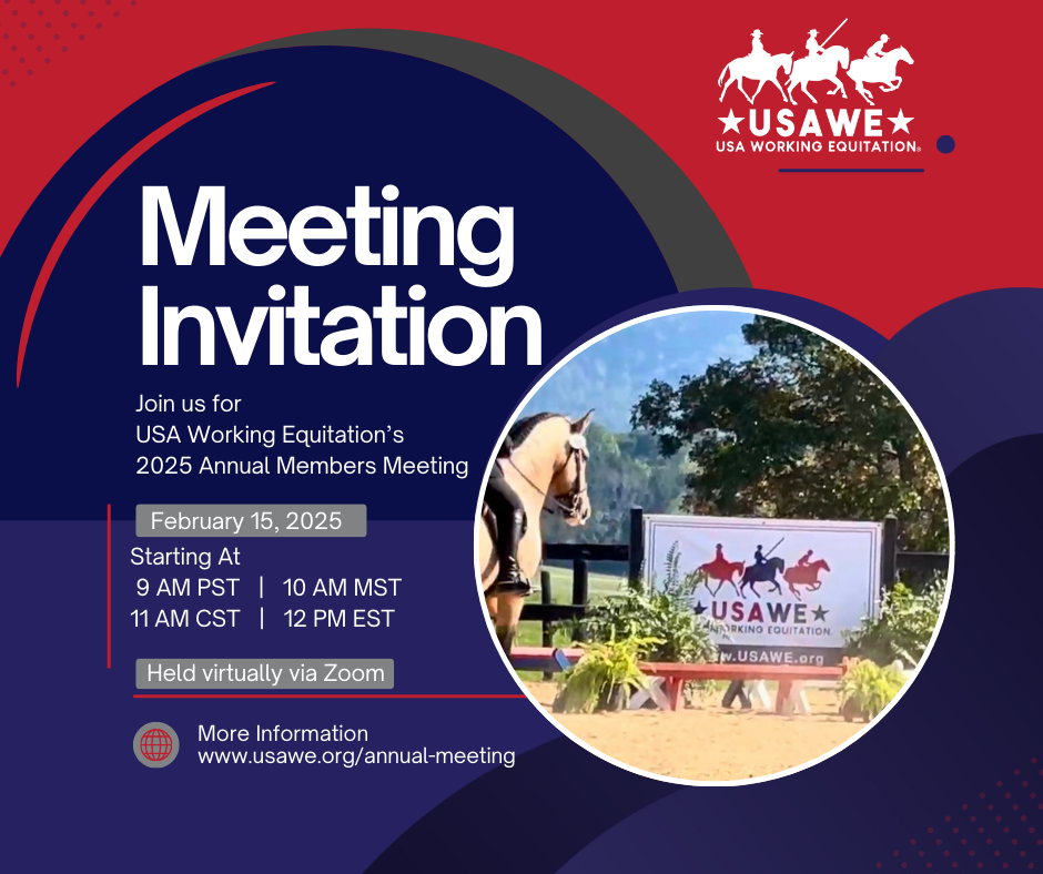 A Zoom meeting for show managers to discuss the upcoming season and any questions they may have. Starting at 5 pm Pacific/6 pm Mountain / 7 pm Central / 8 pm Eastern Please contact Lynsey Moritz for more information at comp.assist@usawe.org or 301-997-3121. |
