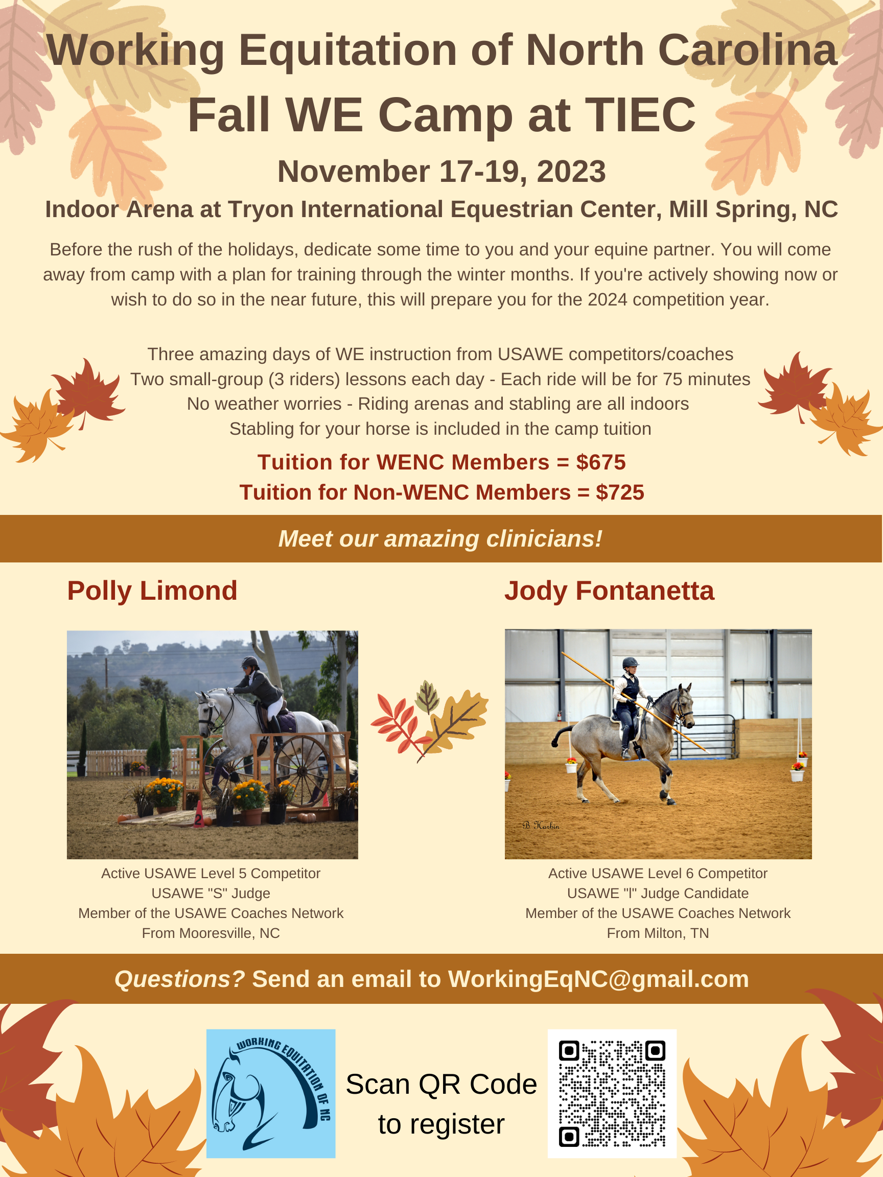 Licensed show# 23-055 offering L1-L7 Visit usawe.org > Competitions > List of Licensed Competitions for license status, performance levels offered, show manager, judge and technical delegate info. Show Premium available on the Working Equitation of North Carolina (WENC) Facebook page: https://www.facebook.com/groups/workingeqnc under 'Files' Facebook page: https://www.facebook.com/groups/workingeqnc Prize List: file:///C:/Users/black/Downloads/2023%20Summer%20Solstice%20at%20TIEC%20Prize%20List_Final.pdf