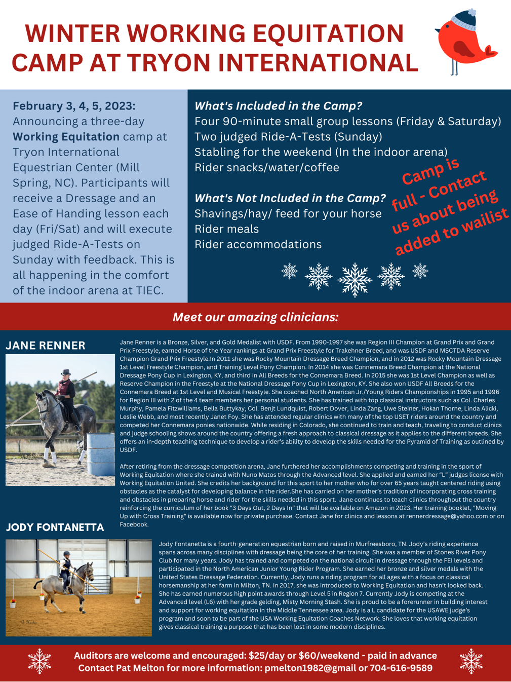 WEBINAR FOR THE 2023 RULE BOOK CHANGES Greetings, The Licensed Officials Committee and members of the Rules Committee will review significant changes in the 2023 U.S. Rules for Working Equitation This webinar will be open to all USAWE members and is worth 2 CE credits for all LOs (Continuing Education Serial# WRR-230112) This webinar was […]