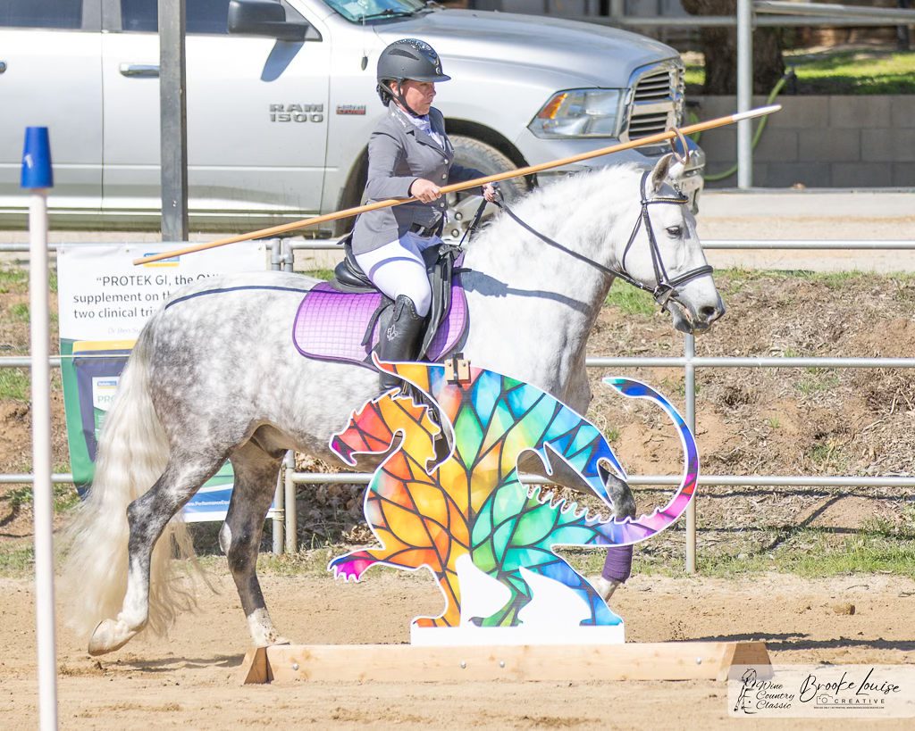 Nicole Zulich & Shotgun Pearl at Mother of All Dragons Working Equitation Show in Santa Clarita, Photo by Brooke Flagtwet