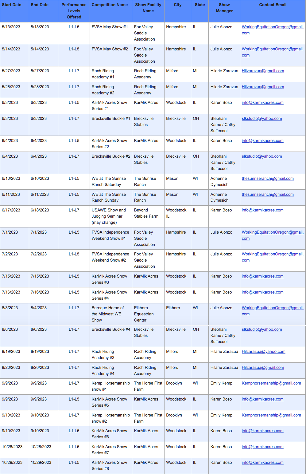 Region 5 has many shows scheduled in 2023! A summary of show dates is below. Please refer to the full USAWE Calendar for all events.